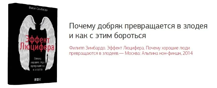 Эффект Люцифера - книга для тех, кому интересно, откуда берутся злодеи, почему, казалось бы, добрый человек, получив повышение или поменяв работу, вдруг начинает вести себя агрессивно и нарушает этические нормы.