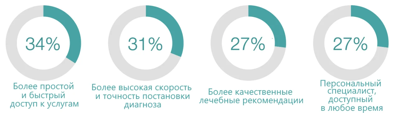Новейшее исследование, проведенное The Advisory Board Company, показывает, что потребители очень заинтересованы в получении виртуальных медицинских услуг, при этом 19% пациентов уже довелось ими воспользоваться. Будь то консультация со специалистом, напоминание о приеме лекарства, мониторинг жизненных показателей, таких как артериальное давление и уровень глюкозы в крови, ежедневная помощь в преодолении хронического недуга — пациенты охотнее соглашаются на виртуальное медицинское обслуживание, так как телемедицина означает для них свободу передвижения и доступа к услугам.