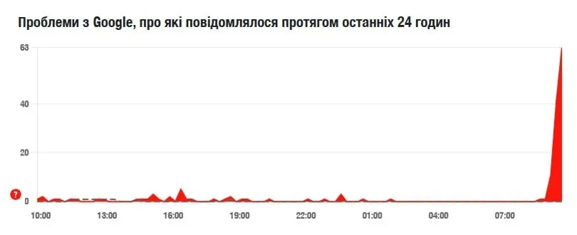На діаграмі, оприлюдненій сервісом, видно, що найбільша кількість повідомлень про проблеми надійшла близько 11:00 за київським часом. Користувачі скаржилися на перебої в роботі пошуковика, поштового сервісу Gmail, відеоплатформи YouTube та хмарних рішень Google Drive.